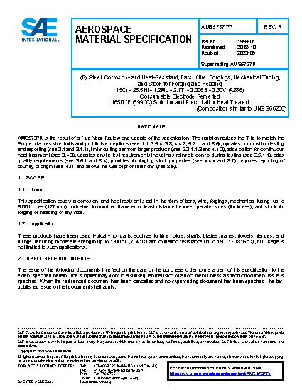 This specification covers a corrosion and heat-resistant steel in the form of bars, wire, forgings, mechanical tubing, and stock for forging or heading.