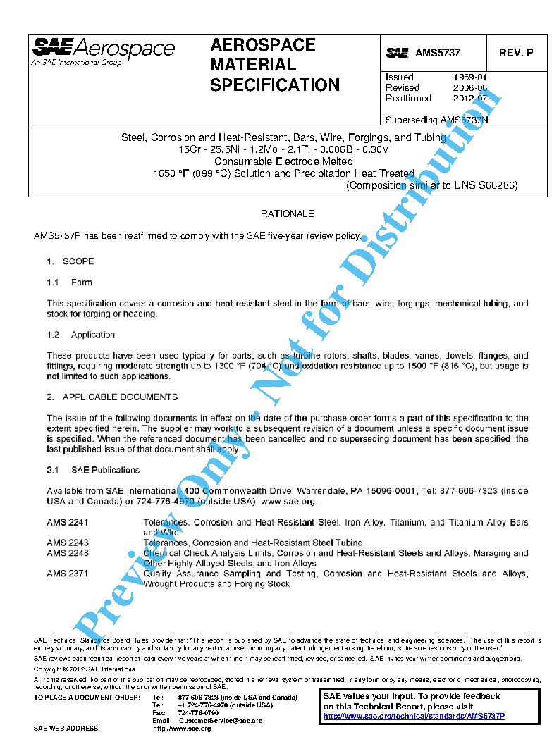 Steel, Corrosion and Heat-Resistant, Bars, Wire, Forgings, and Tubing 15Cr - 25.5Ni - 1.2Mo - 2.1Ti - 0.006B - 0.30V Consumable Electrode Melted 1650 °F (899 °C) Solution and Precipitation Heat Treated