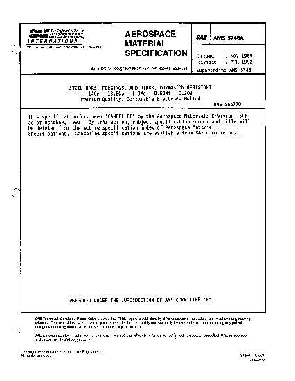 This specification has been "CANCELLED" by the Aerospace Materials Division, SAE, as of October, 1991.