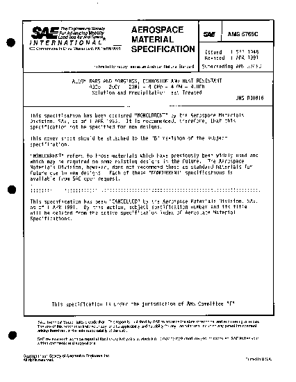 SAE AMS 5765C:1991-04-01