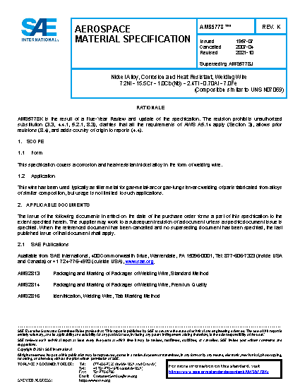 This specification covers a corrosion and heat-resistant nickel alloy in the form of welding wire.