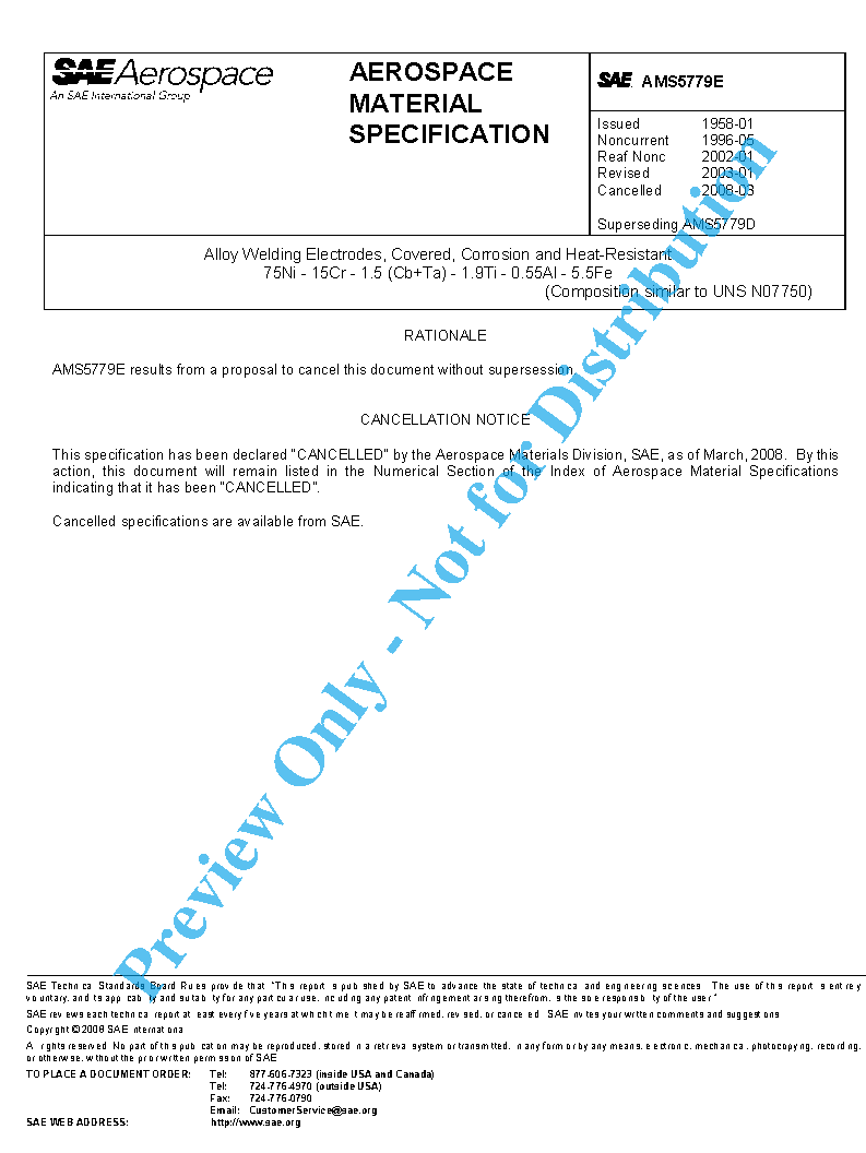 Alloy Welding Electrodes, Covered, Corrosion and Heat-Resistant, 75Ni - 15Cr - 1.5 (Cb+Ta) - 1.9Ti - 0.55Al - 5.5Fe
