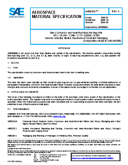 This specification covers a corrosion and heat resistant steel in the form of welding wire.