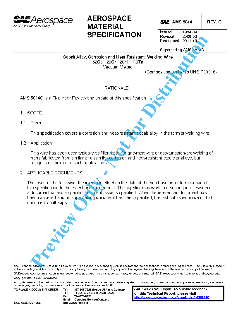 This specification covers a corrosion and heat-resistant cobalt alloy in the form of welding wire.