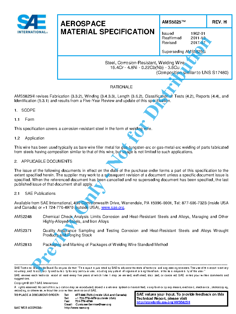 SAE AMS 5825H:2017-07-19