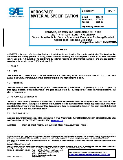 This specification covers a corrosion and heat-resistant cobalt alloy in the form of round wire 0.140 inch (3.56 mm) and under in nominal diameter supplied in straight lengths. (See 8.4.)