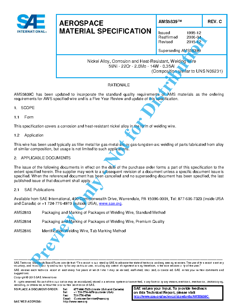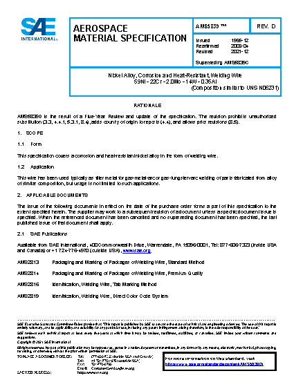 This specification covers a corrosion and heat-resistant nickel alloy in the form of welding wire.