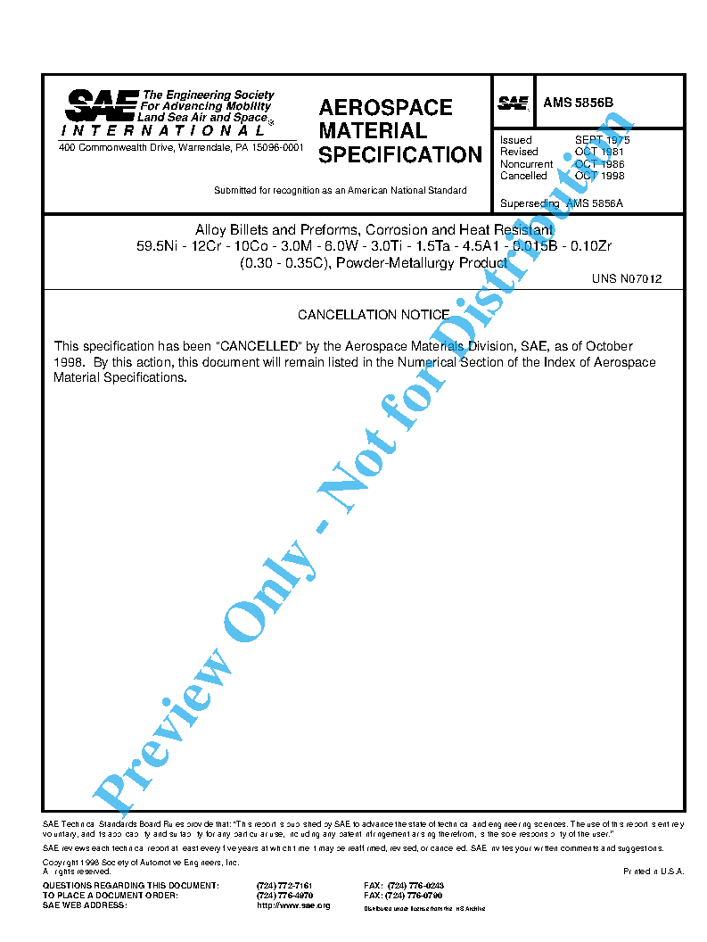 SAE AMS 5856B:1998-10-01