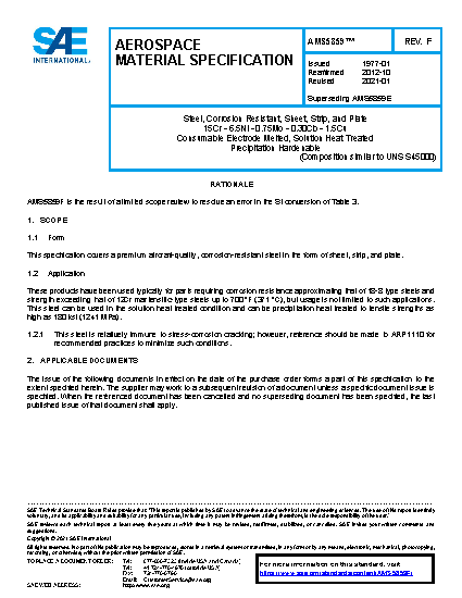 This specification covers a premium aircraft-quality, corrosion-resistant steel in the form of sheet, strip, and plate.