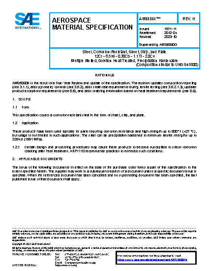 Steel, Corrosion-Resistant, Sheet, Strip, and Plate 12Cr - 8.5Ni - 0.30Cb - 1.1Ti - 2.0Cu Multiple Melted, Solution Heat Treated, Precipitation Hardenable