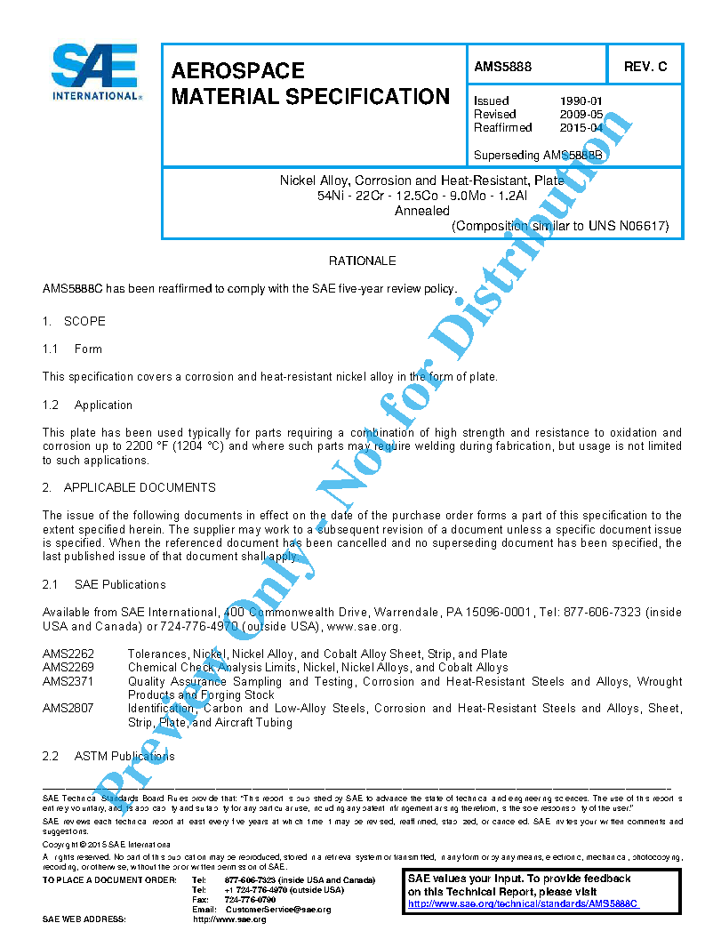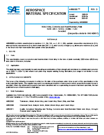 This specification covers a corrosion and heat-resistant nickel alloy in the form of plate.