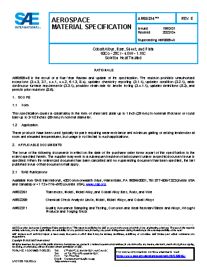 This specification covers a cobalt alloy in the form of sheet and plate up to 1 inch (25 mm) in nominal thickness or round bars up to 3 1/2 inches (89 mm) in nominal diameter (see 8.4).