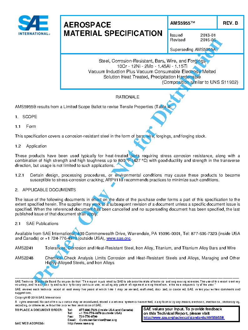 Steel, Corrosion-Resistant, Bars, Wire, and Forgings 10Cr - 12Ni - 2Mo - 1.45Al - 1.15Ti Vacuum Induction Plus Vacuum Consumable Electrode Melted Solution Heat Treated, Precipitation Hardenable