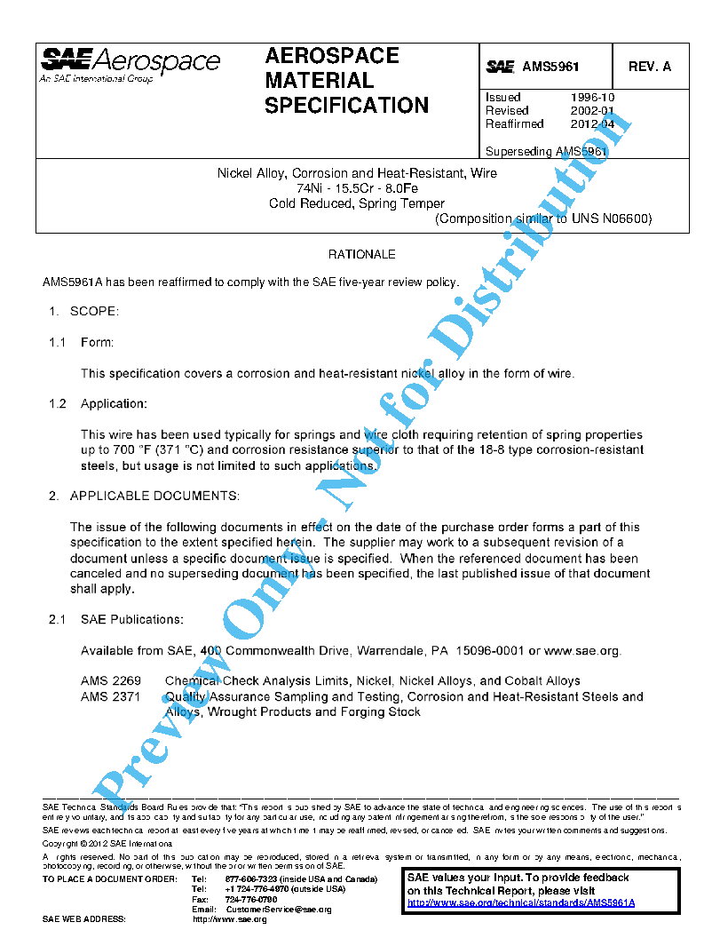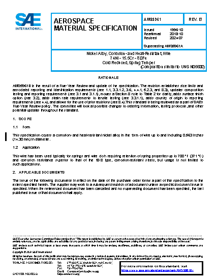 SAE AMS 5961A:2018-10-10