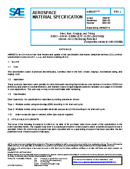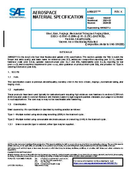 This specification covers a premium aircraft-quality, low-alloy steel in the form of bars, forgings, mechanical tubing, and forging stock.