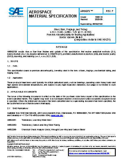 This specification covers a premium aircraft-quality, low-alloy steel in the form of bars, forgings, mechanical tubing, and forging stock.