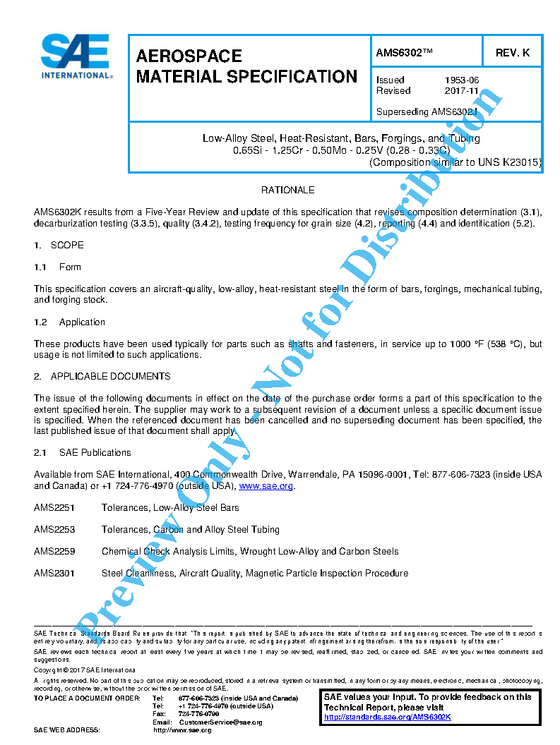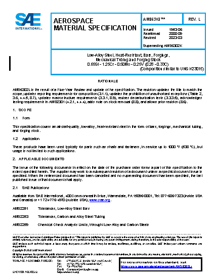 This specification covers an aircraft-quality, low-alloy, heat-resistant steel in the form of bars, forgings, mechanical tubing, and forging stock.