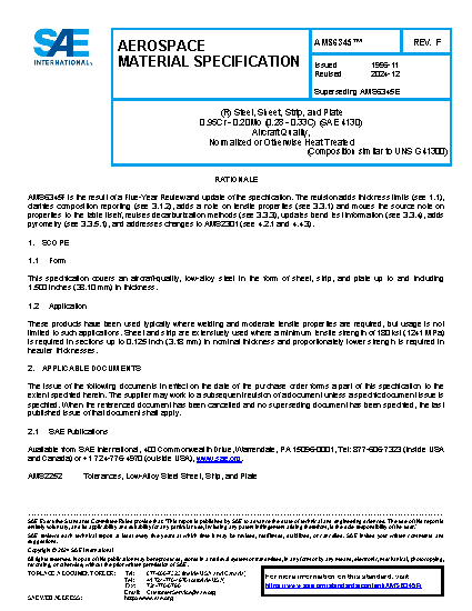 This specification covers an aircraft-quality, low-alloy steel in the form of sheet, strip, and plate.