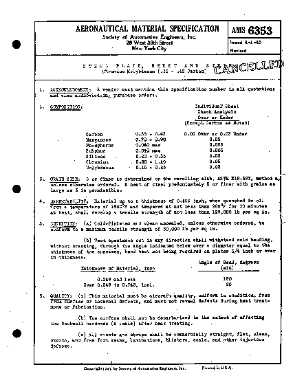 Steel Plate, Sheet and Strip Chromium Molybdenum (.35 - .42 Carbon)