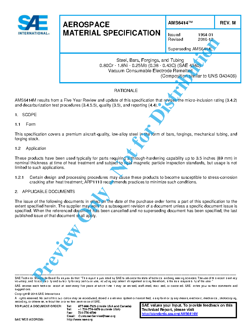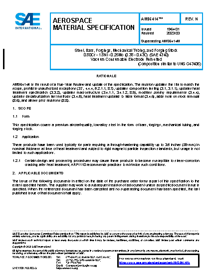 This specification covers a premium aircraft-quality, low-alloy steel in the form of bars, forgings, mechanical tubing, and forging stock.
