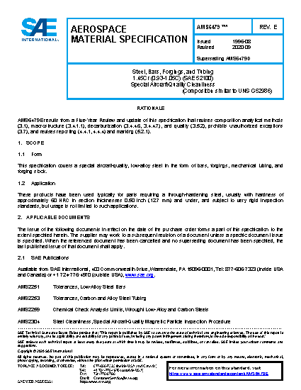 This specification covers a special aircraft-quality, low-alloy steel in the form of bars, forgings, mechanical tubing, and forging stock.