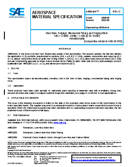 This specification covers an aircraft-quality, low-alloy steel in the form of bars, forgings, mechanical tubing, and forging stock.
