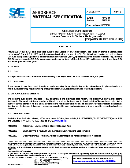 This specification covers a premium aircraft-quality, low-alloy steel in the form of sheet, strip, and plate.