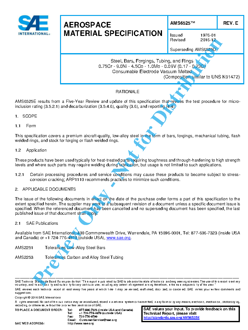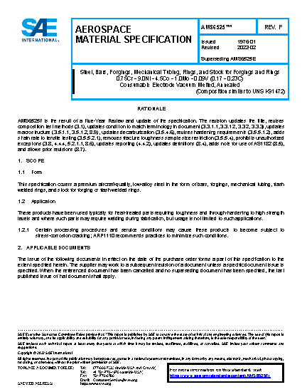 This specification covers a premium aircraft-quality, low-alloy steel in the form of bars, forgings, mechanical tubing, flash welded rings, and stock for forging or flash welded rings.