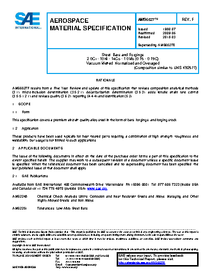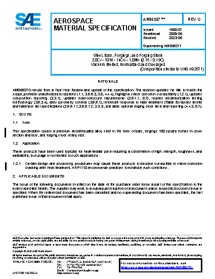 This specification covers a premium aircraft-quality alloy steel in the form of bars, forgings, and forging stock.