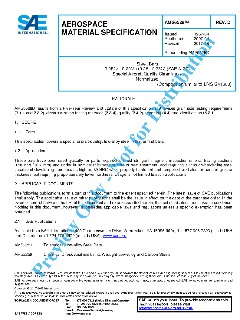 Steel, Bars 0.95Cr - 0.20Mo (0.28 - 0.33C) (SAE 4130) Special Aircraft Quality Cleanliness Normalized