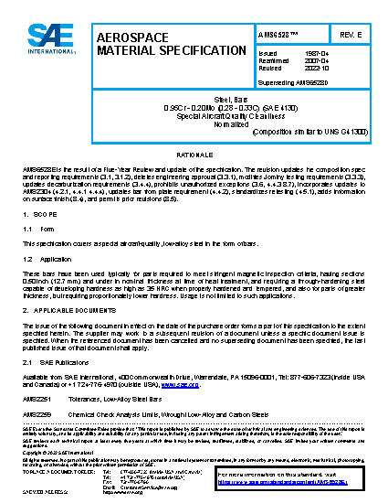 This specification covers a special aircraft-quality, low-alloy steel in the form of bars.