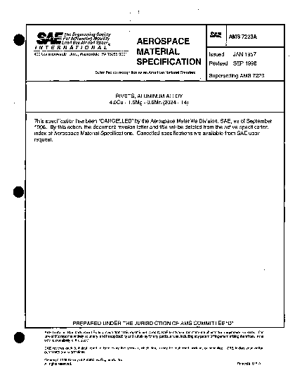 This specification has been 'CANCELLED' by the Aerospace Materials Division, SAE, as of September 1996. Alloy: 2024-T4 UNS Number: A92024