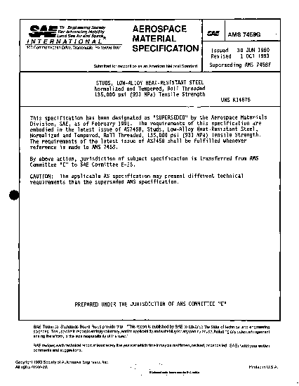 STUDS, LOW-ALLOY HEAT-RESISTANT STEEL Normalized and Tempered, Roll Threaded 135,000 psi (931 MPa) Tensile Strength