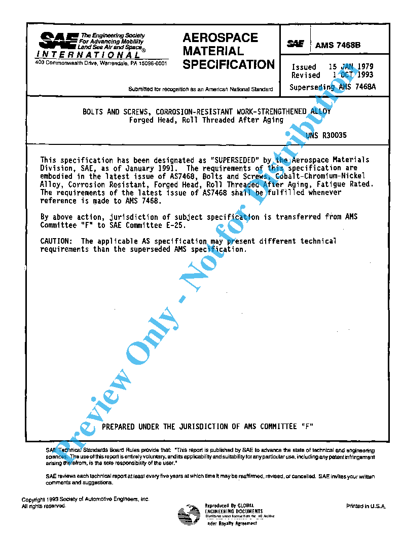 SAE AMS 7468:1995-05-01