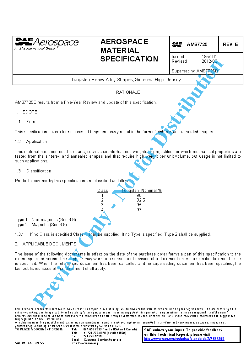 This specification covers four classes of tungsten heavy metal in the form of sintered and annealed shapes.