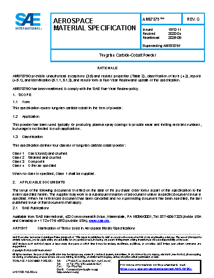This specification covers tungsten carbide-cobalt in the form of powder.