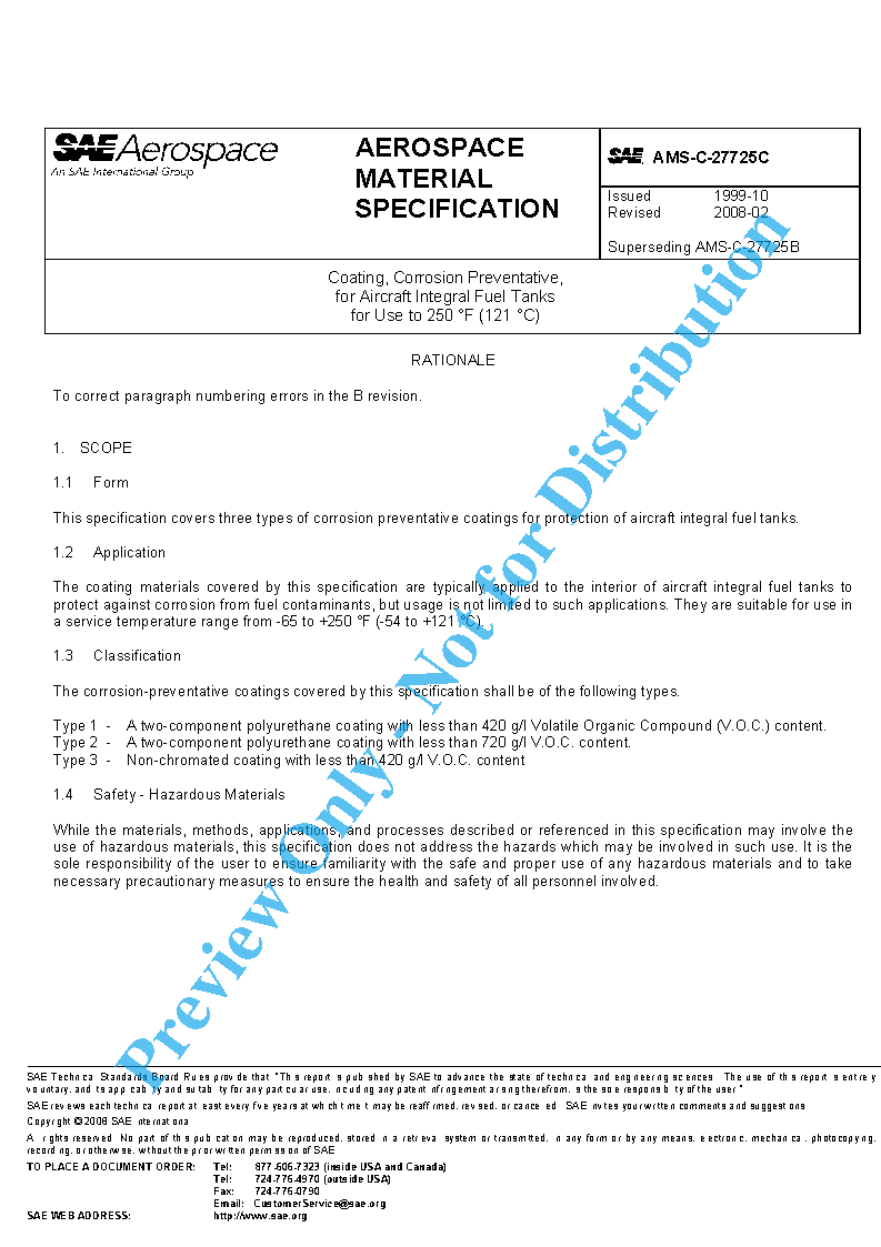 Coating, Corrosion Preventive, Polyurethane For Aircraft Integral Fuel Tanks for Use to 250 °F (121 °C)