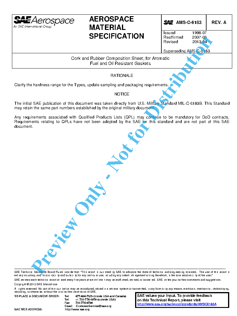 This specification covers vulcanized sheet made of granulated cork uniformly dispersed in a synthetic rubber compound, for use in gaskets where aromatic fuel or oil resistance is required (See 6.2).