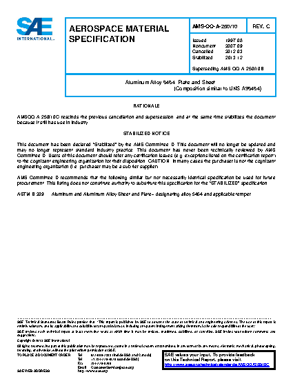 SAE AMS-QQ-A-250/10C:2013-12-12