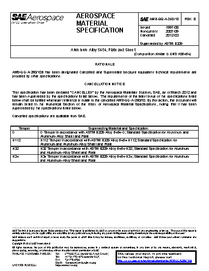 This specification covers the specific requirements for 5454 aluminum alloy plate and sheet; the general requirements are covered in AMS-QQ-A-250.