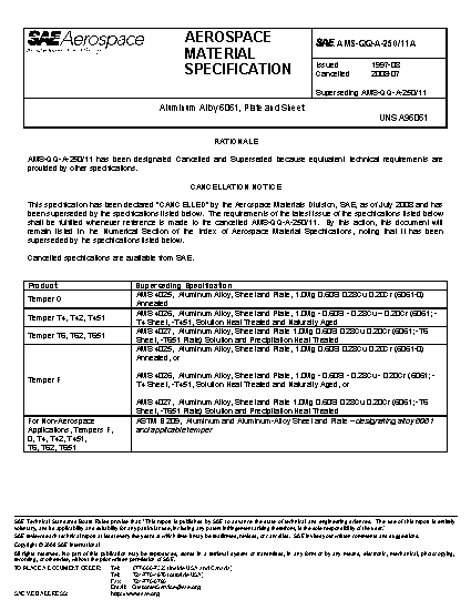This specification covers the specific requirements for 6061 aluminum alloy plate and sheet.