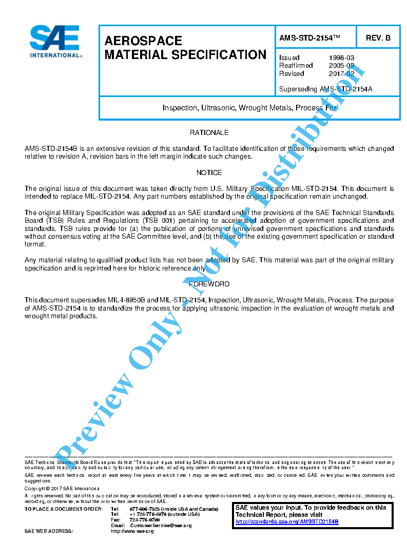 AMS-STD-2154B is an extensive revision of this standard. To facilitate identification of those requirements which changed relative to revision A, revision bars in the left margin indicate such changes.