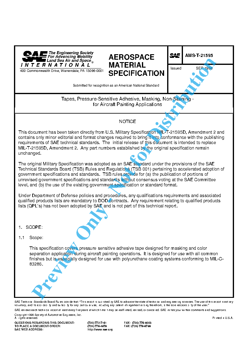 SAE AMS-T-21595:1998-09-01