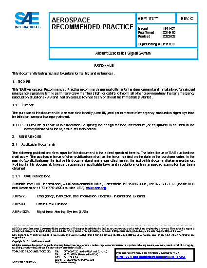 This Aerospace Recommended Practice recommends general criteria for the development and installation of an aircraft emergency signal system to permit any crew member (flight or cabin) to inform all other crew members that an emergency evacuation situation exists and that an evacuation has been or should be immediately started.