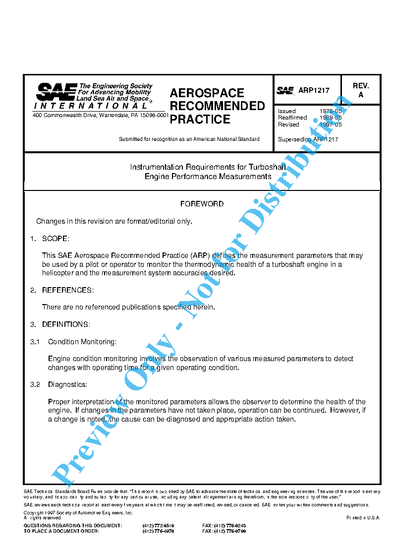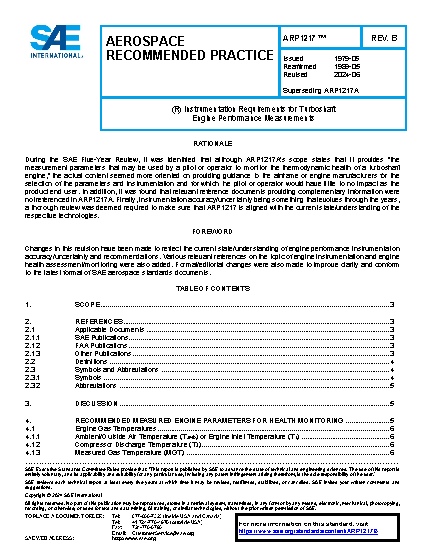 This SAE Aerospace Recommended Practice (ARP) defines the measurement parameters that may be used by a pilot or operator to monitor the thermodynamic health of a turboshaft engine in a helicopter and the measurement system accuracies desired.