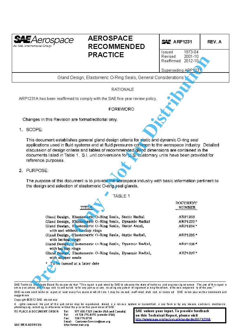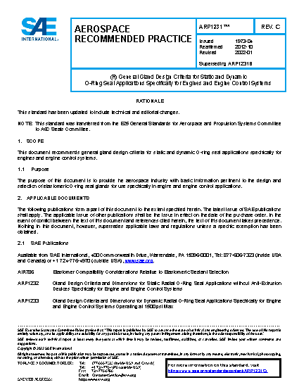This document establishes general gland design criteria for static and dynamic O-ring seal applications used in fluid systems and at fluid pressures common to the aerospace industry. Detailed discussion of design criteria and tables of recommended gland dimensions are contained in the documents listed in Table 1. SI unit conversions for U.S. customary units have been provided for reference purposes.