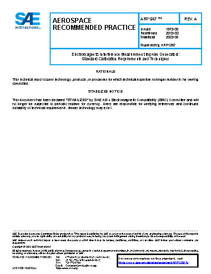 This Aerospace Recommended Practice (ARP) describes a standard method and means for measuring or calibrating the "Spectrum Amplitude" output of an impulse generator.