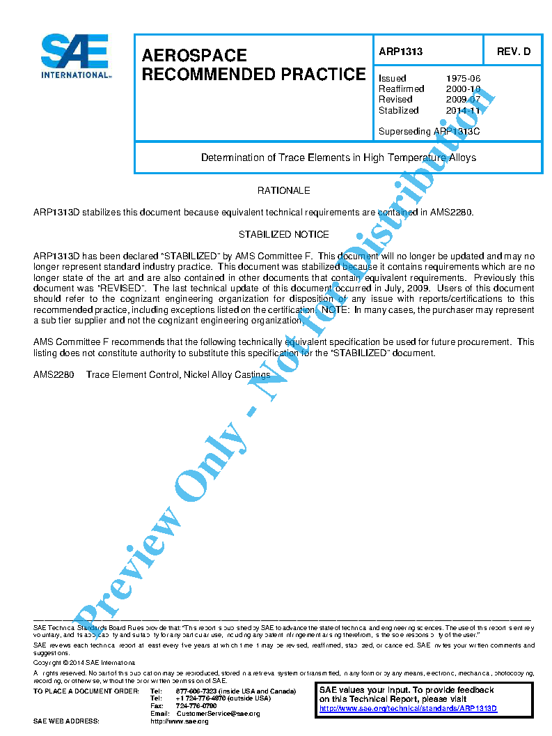 This SAE Aerospace Recommended Practice (ARP) describes procedures for the determination of trace elements listed in AMS2280 for Nickel, Cobalt, and Iron-based high temperature alloys.