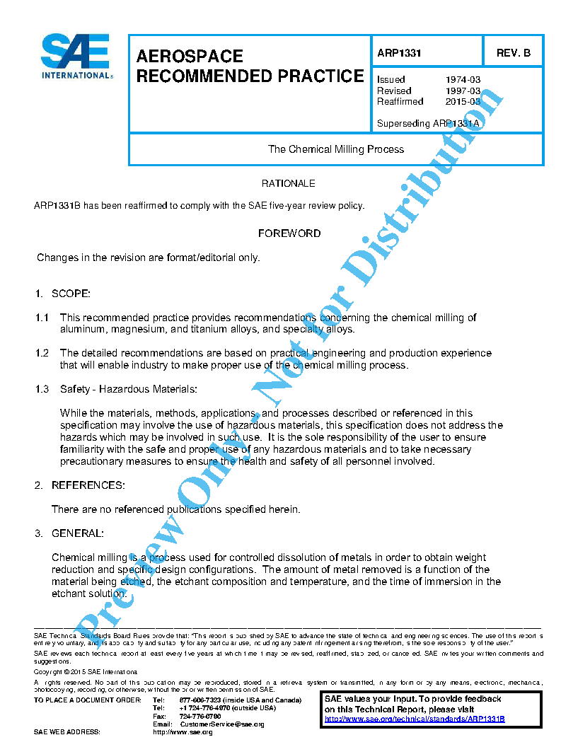 This recommended practice provides recommendations concerning the chemical milling of aluminum, magnesium, and titanium alloys, and specialty alloys.