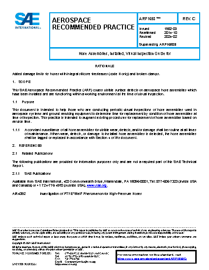 This SAE Aerospace Recommended Practice (ARP) covers visible surface defects on aerospace hose assemblies which have been installed and are functioning within a working environment at the time of visual inspection.
